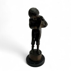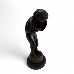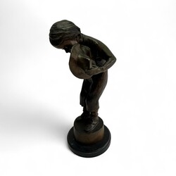 | Kavel | 972. Een bronzen sculptuur van een stiekem rokend jongentje |
