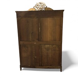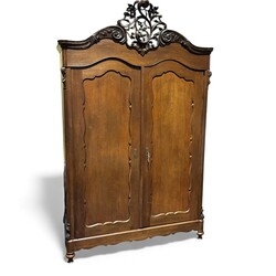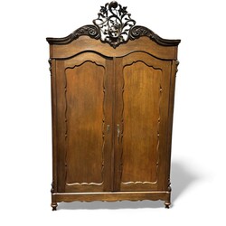 | Omschrijving | Een 19e eeuwse eikenhouten linnenkast met drie lades achter de deuren en versierd met houten kuif. |