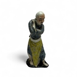 | Conditie | Gebruikssporen en de visserman, voet gelijmd, penseelwasser gerestaureerd. |