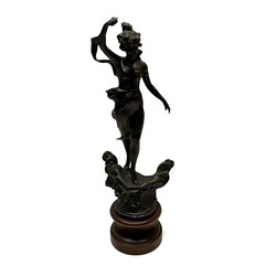 | Omschrijving | Een terracotta geglazuurde sculptuur van een moeder met kind, ca 1900. Hierbij twee gepatineerde metalen sculpturen van dames, ca 1910. |