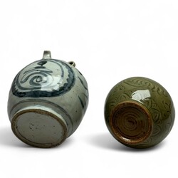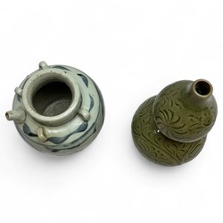 | Kavel | 583. Een Vietnamese Celadon kalabasvaas en een wijnkan. |