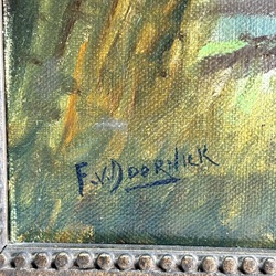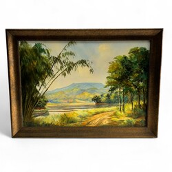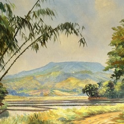 | Omschrijving | Schilderij, olieverf op doek. Weggetje bij rijstvelden in Indonesië, met bergen op de achtergrond. Linksonder gesigneerd F. v. Doornick. In bronskleurige profiellijst. Op de achterzijde spieraam tekst ‘de de Tangkuban Perahu gezien bij .. Bandung’. |
