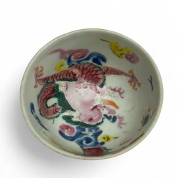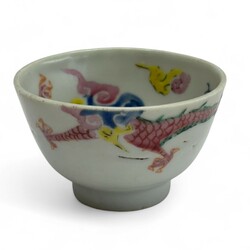 | Omschrijving | Een antiek 18e eeuws Chinees porseleinen kopje met Famille Rose drakendecor, Yongzheng periode (1735-1796). |