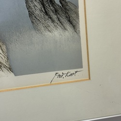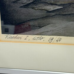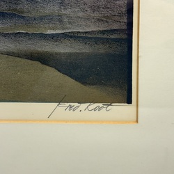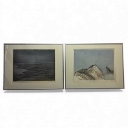 | Omschrijving | Lot van twee litho's in aluminium lijsten, titel ‘Chomo-loengo’ en ‘Kanheri I’. Oplage’s 6/46 en 19/40. Rechtsonder gesigneerd Fred Koot (Amsterdam 1927 - Eindhoven 2000) |