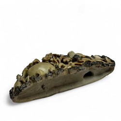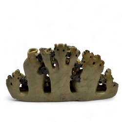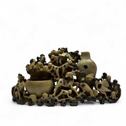 | Omschrijving | Een antiek 19e of vroeg 20e eeuws Chinees spekstenen sculptuur of vaas, rijk gestoken met decor van apen, herten en andere dieren. |