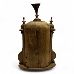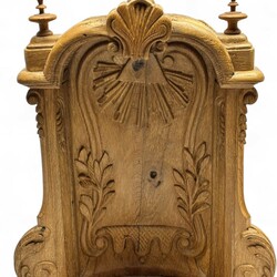 | Omschrijving | Een groot antiek 19e eeuws eikenhouten nis voor een heiligenbeeld, gestoken met o.a. krul- en schelpmotieven en houten knoppen aan de bovenzijde. |