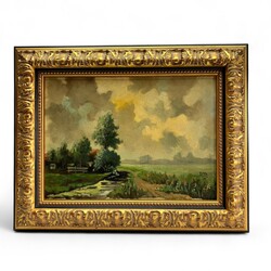 | Omschrijving | Schilderij, olieverf op doek. Hollands polderlandschap, rechtsonder gesigneerd H, Petri (vermoedelijk Hans Petri, Weerselo 1919 - Dordrecht 1996), gedateerd 1934. Verso locatie ‘Zwanenburg bij Halfweg’. |