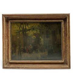 | Omschrijving | Schilderij, olieverf op doek, gemonteerd op board (marouflé). Buitentafereel met familie voor een huis. Rechtsonder gesigneerd Hermanus Antonius van Daalhoff (Haarlem 1867 - Den Haag 1953). |