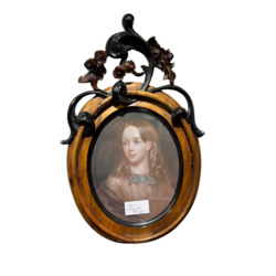 | Omschrijving | Lot van twee gouaches op papier, portretten van twee meisjes, waaronder één in fraaie 19e eeuwse houten lijst, Biedermeier. Met daarbij een ingelijst haarlokje. |