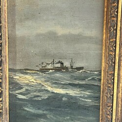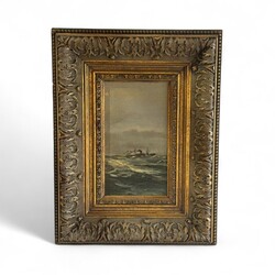 | Omschrijving | Schilderij, olieverf op paneel. voorstelling van een stoomschip op de Noordzee. Ongesigneerd, verso met toeschrijving aan Romain Steppe. |