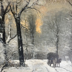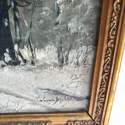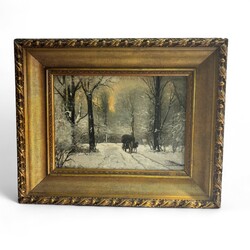| Omschrijving | Schilderij, olieverf op doek, gemonteerd op paneel (marouflé). Winterlandschap met slee. Kopie naar Louis Apol. |