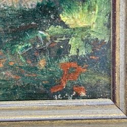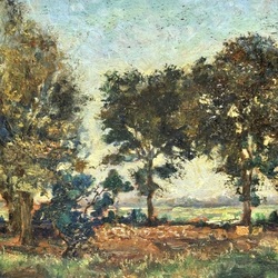 | Omschrijving | Schilderij, olieverf op paneel. Landschap met bomen. Rechtsonder gemonogrammeerd JP , Hollandse School 20e eeuw. |
