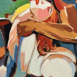 | Omschrijving | Schilderij, olieverf op doek. Expressionstisch werk met voorstelling van man en vrouw. Linksonder gesigneerd HN, gedateerd 1990. In zwarte baklijst. |