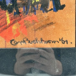 | Omschrijving | Gouache op papier, voorstelling van een kermis. Rechtsonder gesigneerd ‘Boekhoorn’, gedateerd 1961. Betreft vermoedelijk Jan Boekhoorn (1939 - Nijmegen 2012), gedateerd 1961. |