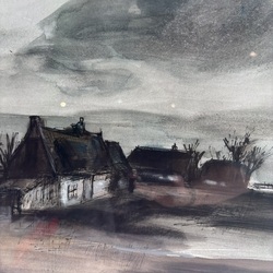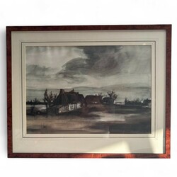| Omschrijving | Gemengde techniek op papier, voorstelling van een landschap. Rechtsonder gesigneerd Jelle Hoogstra (Leeuwarden 1924 - Rotterdam 2003). |