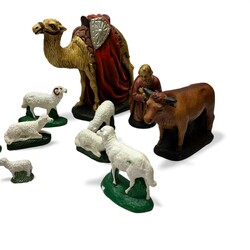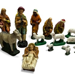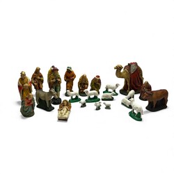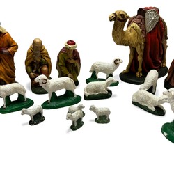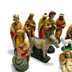 | Omschrijving | Lot met antieke gipsen polychroom beschilderde Kerststalbeelden. Ca 1920. |