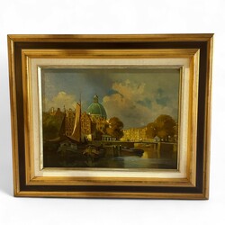 | Omschrijving | Schilderij, olieverf op paneel. Stadsgezicht Amsterdam, met schepen op de voorgrond en de koepelkerk op de achtergrond. Rechtsonder gesigneerd L. Lamers (20e eeuw). In profiellijst. |