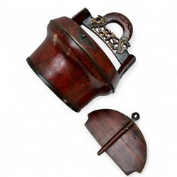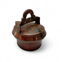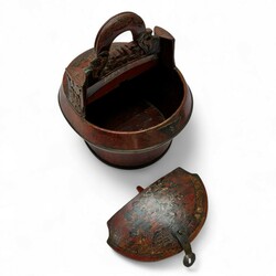 | Omschrijving | Een laat 19e of vroeg 20e eeuwse Chinees lakwerken bewaardoos met messing beslag en gestoken greep. |