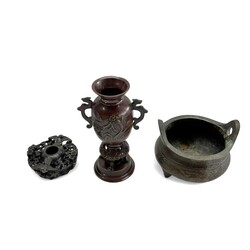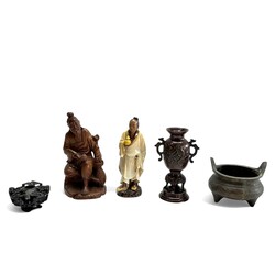 | Omschrijving | Lot aziatica, waaronder een 19e eeuwse Japanse bronzen vaas, Meiji periode (1686-1912), een 20e eeuws Shiwan figuur van een man met kalebasvaas en een Chinees bronzen wierookbrander. |
