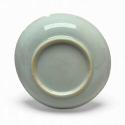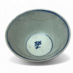 | Conditie | Randen borden met fritting, één bord gelijmd, één schoteltje met chip 6mm uitlopend in haarlijn (2,2 cm), twee kopjes gelijmd. |