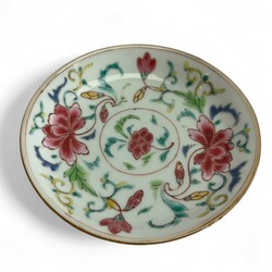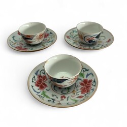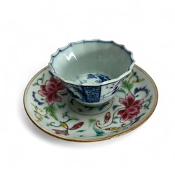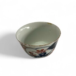 | Conditie | Kangxi kopje met minieme randfritting, één vaasje met kleine randchips (2-3 mm), één imari kopje met chipje en haarlijn, één Famille rose schoteltje met chip 4 mm |