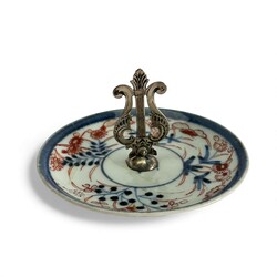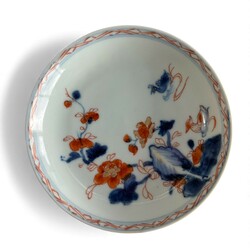 | Omschrijving | Lot imari porselein: een 18e eeuws Japans imari schoteltje met tweede gehalte (835/1000) zilveren montuur, een 18e eeuwse Chinees porseleinen kop en schotel, imari, met decor van bloemen en eenden, en een los 18e eeuws imari kopje. |