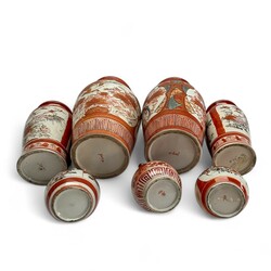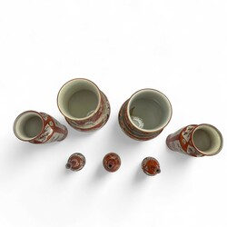| Omschrijving | Lot van zeven antieke Japans porseleinen vazen, kutani, Meiji periode (1868-1912), waaronder twee paar kastvazen en drie pijpvaasjes. Allen met floraal decor, de grote kastvazen met geometrische decors bij de hals en vogels in het midden, Grote vazen gemerkt ‘kutani’, één pijpvaasje ongemerkt. |