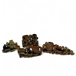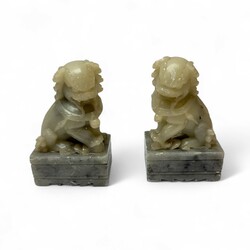 | Omschrijving | Een lot met elf stuks Chinees spekstenen sculpturen. Diverse voorstellingen, waaronder twee tempelleeuwtjes. |