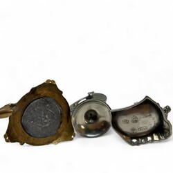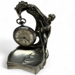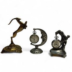 | Omschrijving | Lot van drie zakhorlogehouders: één ontwerp Johannes Bosma, voet niet origineel, één in de vorm van een maan en één jugendstil stijl, in de vorm van een staande dame, aan de onderzijde gemerkt Achille Gamba. |
