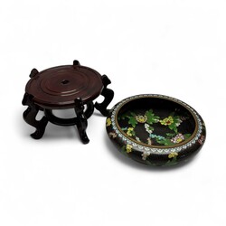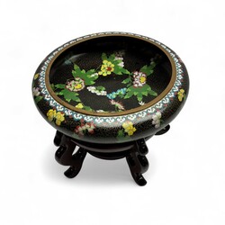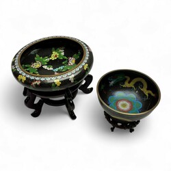 | Kavel | 561. Lot van twee Chinees cloisonné kommen op houten standaard |