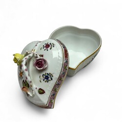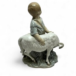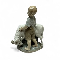 | Omschrijving | Een 20e eeuws Spaans porseleinen sculptuur, voorstelling van een jongen met een geit. Aan de onderzijde gemerkt Nao, Spanje. Met daarbij een 20e eeuws hartvormig porseleinen dekseldoosje, beschilderd met floraal decor en met bloemknoppen op de deksel. Gemerkt Herend, Hongarije, aan de onderzijde. |