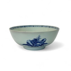 | Omschrijving | Een antieke 18e eeuwse Chinees porseleinen kom, Qianlong periode (1735-1796), met onderglazuur blauw landschapsecor. |