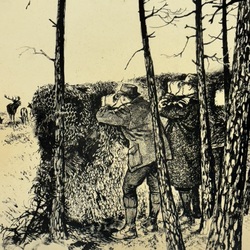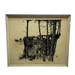 | Omschrijving | Een litho op papier. Twee jagers bespieden een kudde edelherten. Gesigneerd in de druk Rien (= Rien Poortvliet 1932-1995). |