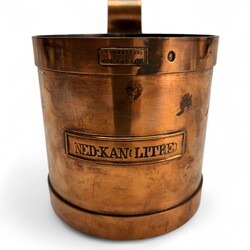 | Omschrijving | Een antieke roodkoperen inhoudsmaat, gemerkt H. Krabbe & Zoon ‘s Hage’. |