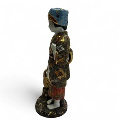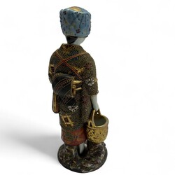 | Omschrijving | Japans polychroom porseleinen beeld (mogelijk Satsuma-stijl) van een vrouw met watermand, fijn gedetailleerd en deels verguld. |