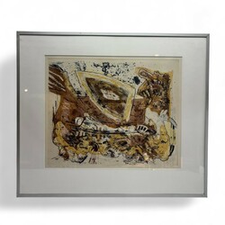 | Omschrijving | Kleurenets op papier, titel 'In de ultieme atom / kaka!'. Rechtsonder gesigneerd Tim Hinterding (Kethel, 1952), gedateerd 1991, oplage 13/30 |