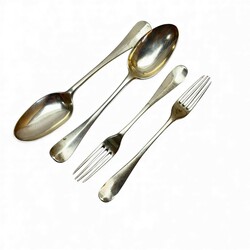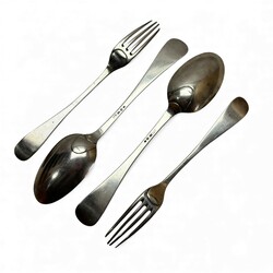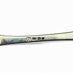 | Omschrijving | Lot van twee antieke 18e eeuwse zilveren lepels, gekeurd met meesterteken van een vogel = mr. Ate Jochums Offringa, werkzaam als zilversmid in Huizum vanaf 1779. Tevens gekeurd met jaarletter E = 1805. |