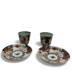 | Omschrijving | Lot van twee antieke 18e eeuwse Japans imari kop en schotels, Edo periode (1603-1868), met floraal imari decor. |