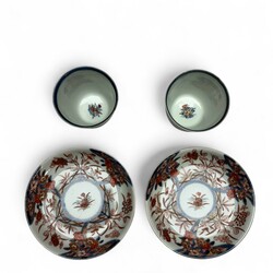| Kavel | 855. Twee 18e eeuwse Japans imari chocolade koppen met schotels |