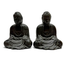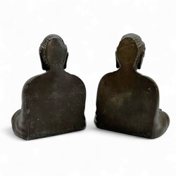 | Omschrijving | Een stel bronzen boekensteunen in de vorm van Boeddha. Ongemerkt, vermoedelijk eerste helft 20e eeuw |