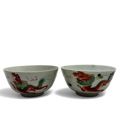 | Kavel | 586. Twee Chinese kommen met draak en fenix |