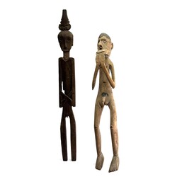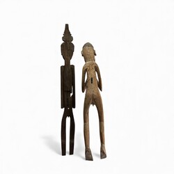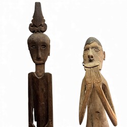 | Omschrijving | Lot van twee 20e eeuwse Indonesische sculpturen, één voorouderfiguur (hampatong), Borneo, en een gedeeltelijk beschilderd en uit hout gestoken Asmat sculptuur, Papua Nieuw Guinea. |
