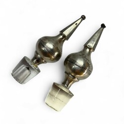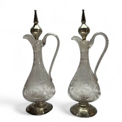 | Omschrijving | Twee met graveerwerk versierde karaffen, geplaatst op zilveren voet en met zilveren stop. |