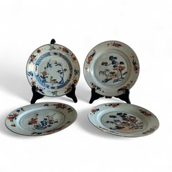 | Omschrijving | Lot van vier antieke 18e eeuwse Chinees porseleinen borden, Qianlong periode (1735-1796), met imari decors, o.a. met vogels en bloemen. |
