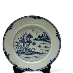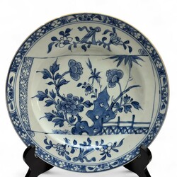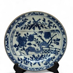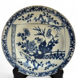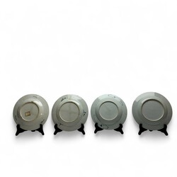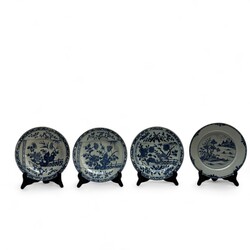 | Omschrijving | Vier Chinees porseleinen Qianlong periode schotels. Blauw/wit, waarvan drie met een decor van een scroll met rots en pioenrozen op het plat. De ander mer een Chinees landschap met huisje aan de rivier. Ca 1760 |