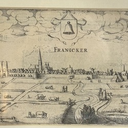 | Omschrijving | Een antieke vroeg 17e eeuwse kopergravure, gezicht op de stad Franeker, afkomstig uit "Description de touts les Pays Bas" door L. Guicciardini, 1613. |