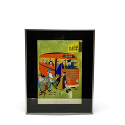 | Omschrijving | Gouache op papier, voorstelling van een bus bij bushalte met diverse figuren, kat en hond. Rechtsonder gesigneerd Will Berg (Arnhem 1921-2001). Betreft een originele illustratie voor het kindertijdschrift ‘Okki’. |