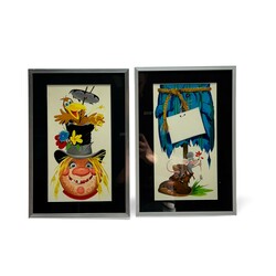 | Omschrijving | Lot van twee gouaches op papier, voorstelling van een vogelverschrikker en een muis in een schoen. Beide originele ontwerpen voor postkaarten. Eén rechtsonder gesigneerd Will Berg (Arnhem 1921 - 2001) |