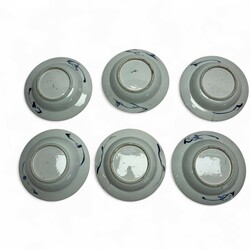 | Omschrijving | Lot van zes antieke 18e eeuwse Chinees porseleinen room- of papborden, Qianlong periode (1735-1796) met imari decor, onderglazuur blauw en bovenglazuur goud-roud decor, voorstelling van bloemen op een rots op het plat |