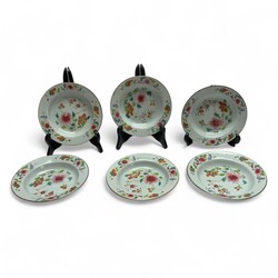 | Kavel | 557. Zes 18e eeuwse Famille Rose roombordjes |
